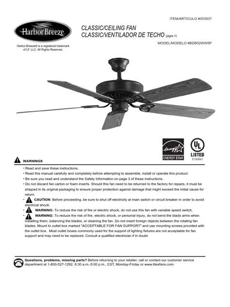 Read Harbor Breeze Ceiling Fan Manual rtf Open Library